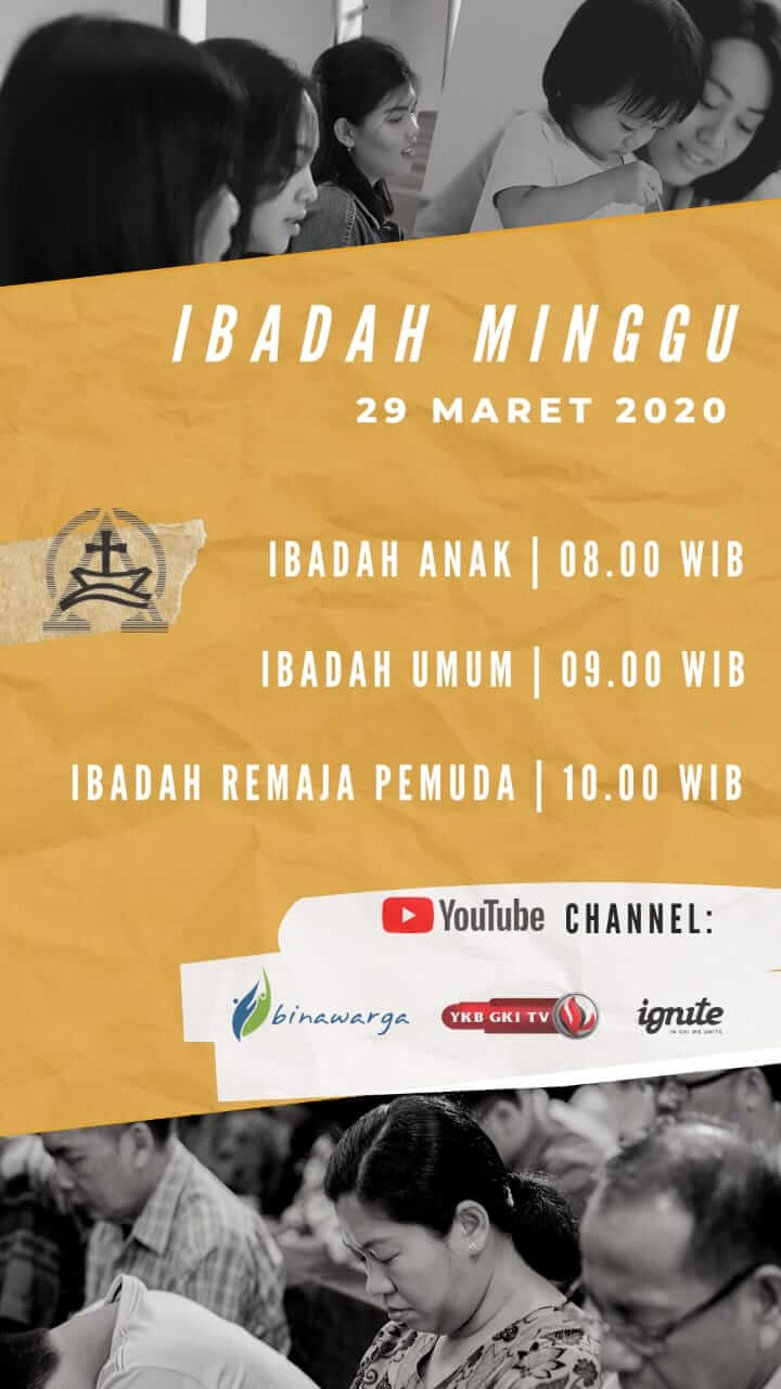 Kebaktian online besok Minggu 05 April 2020 (Umum, Pemuda dan Remaja) dapat diakses melalui kanal Youtube: GKI Sulung Surabaya (link akan diberikan melalui WA, IG, FB dan YouTube GKI Sulung). Ibadah anak akan diadakan di rumah masing-masing dan dipimpin oleh orang tua (file penjelasan…